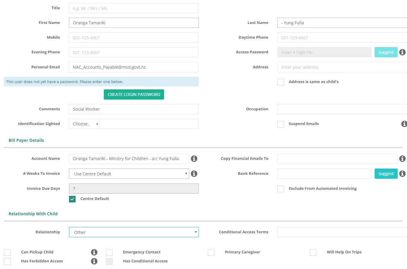 On the Oranga Tamariki contact, you can then set other items like copying the financials to the Parent/Guardians email address.