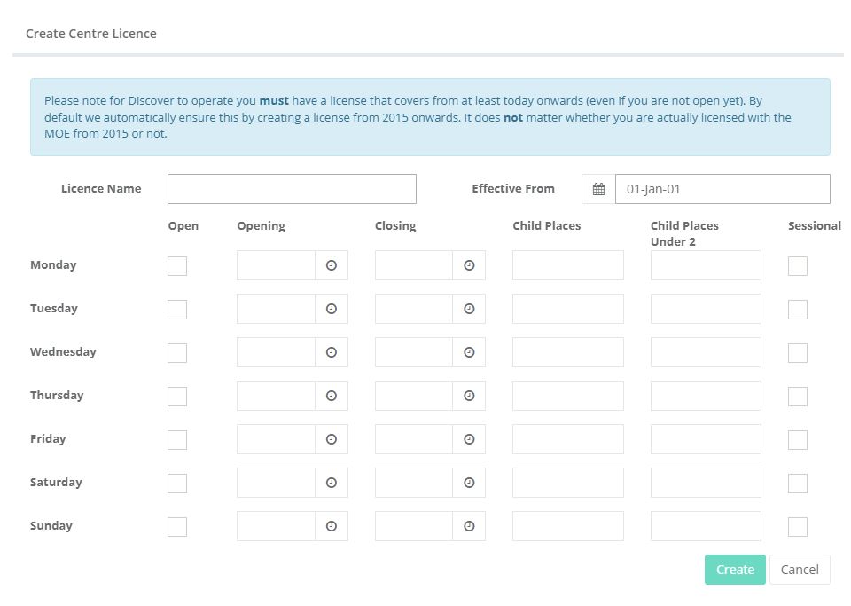 When you are new to Discover, we recommend leaving the one that was created by your Onboarding Specialist when we set up your centre. Even if this is incorrect, please leave the information as is, and Create New as above.
