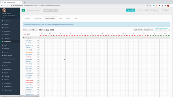 - Within this feature, along to the menu to the top of the screen, select Roster Scheduler