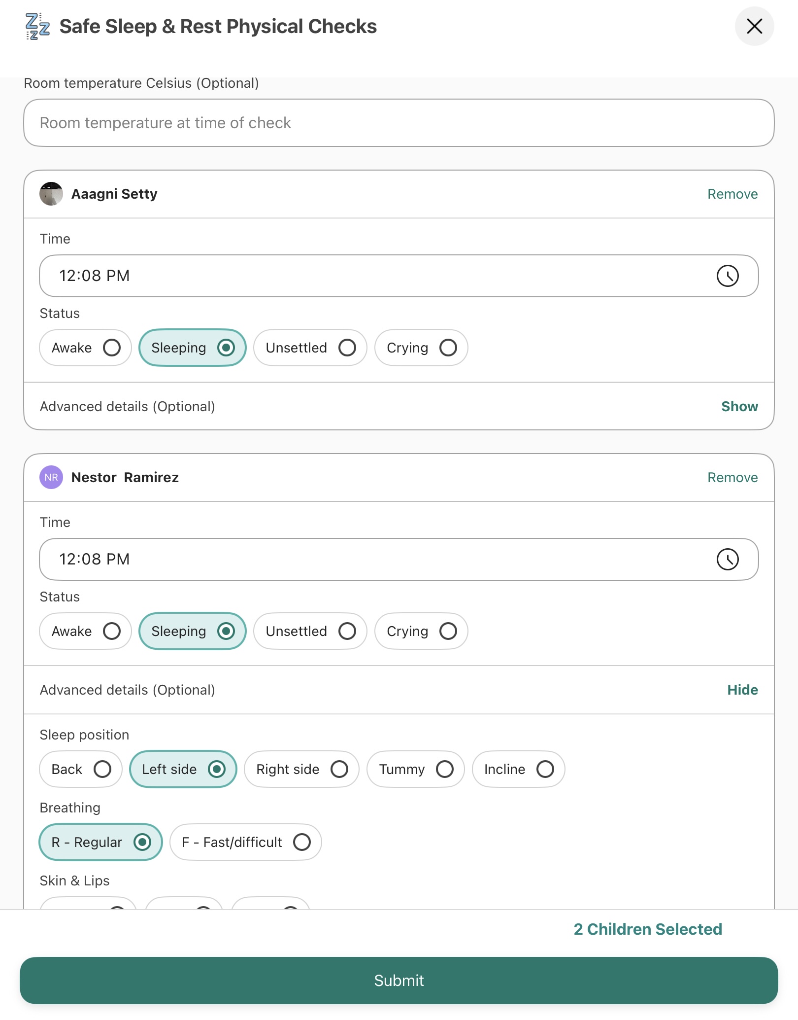 Record Sleep for Multiple Children: