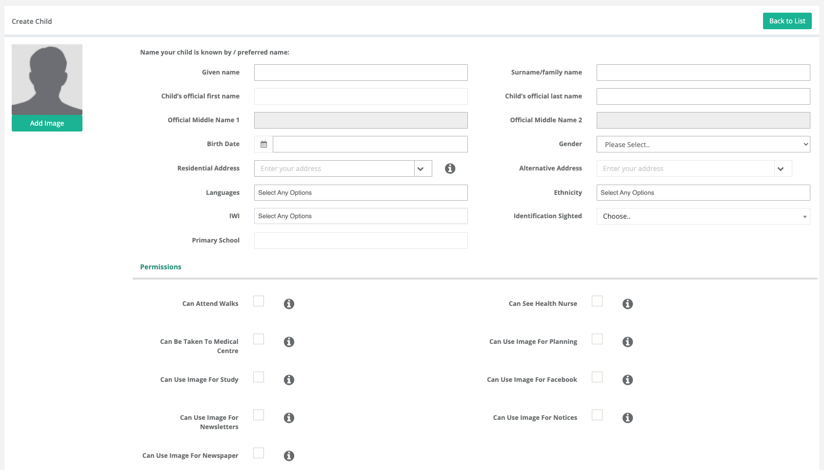 - Search for the child using the search bar, including all filters so that you don't create a duplicate if the child has been here or enquired before.