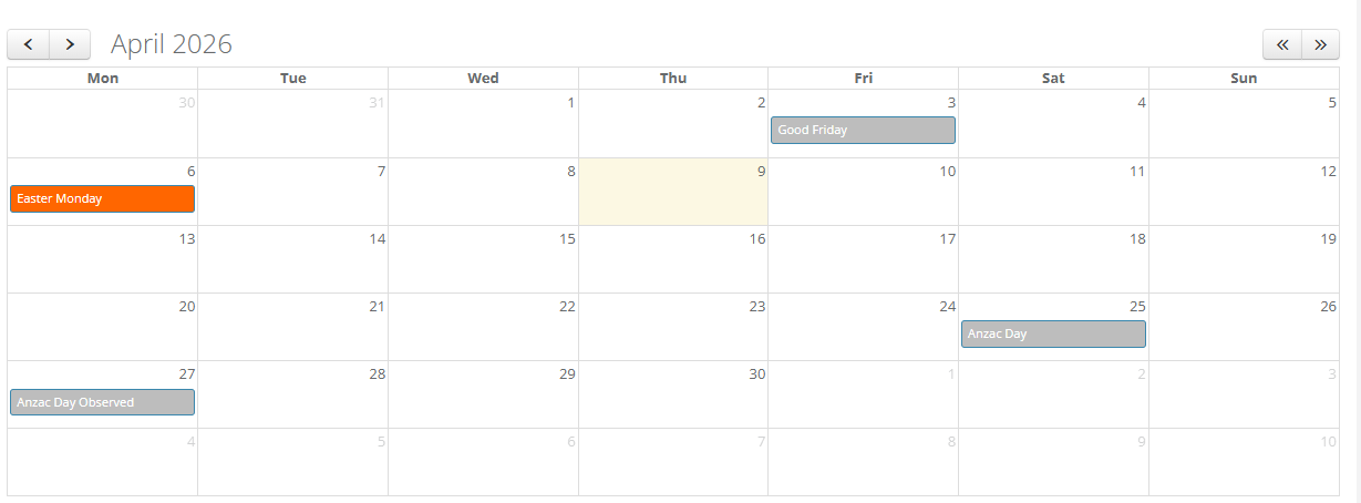 When first setting up the Calendar, the grey Statutory Holidays are placeholders only. You must open each one, select the required options, and click Save.