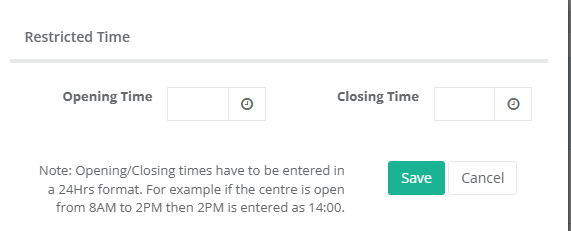 - Then the times the Service/Centre was opened will appear