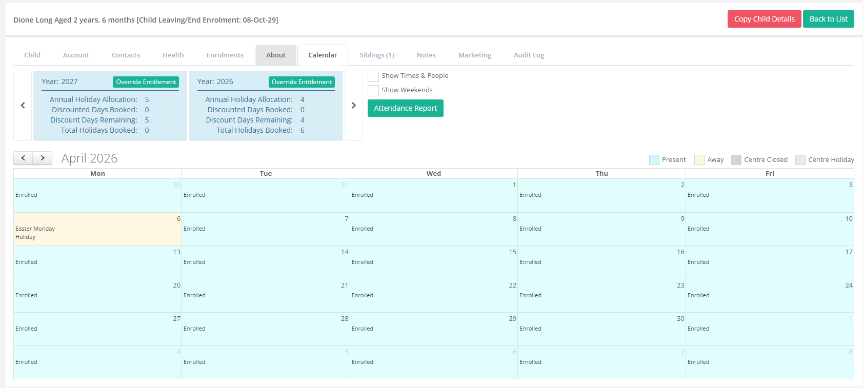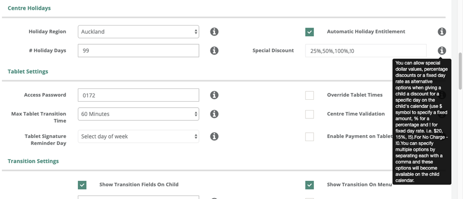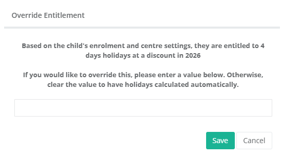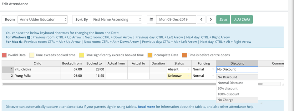 Tip: Only children with Holiday/Absence Discount Entitlement can receive discounts.