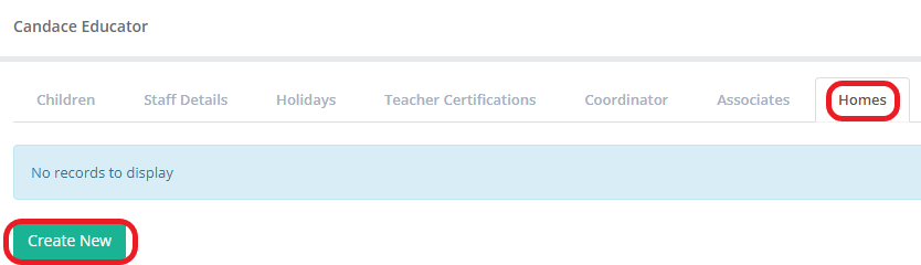 Once your Educator profile has been created, navigate to the Homes tab at the top of the record.