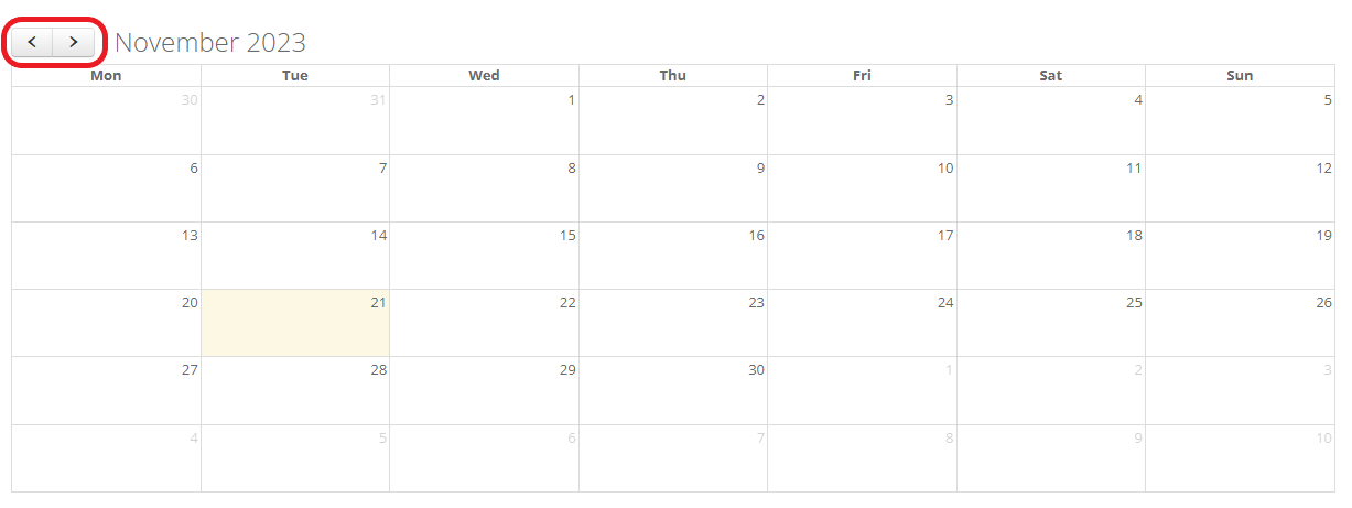 2. Using the back and forward arrows on the calendar, navigate to the relevant month, and click on the start date/day of the closure.