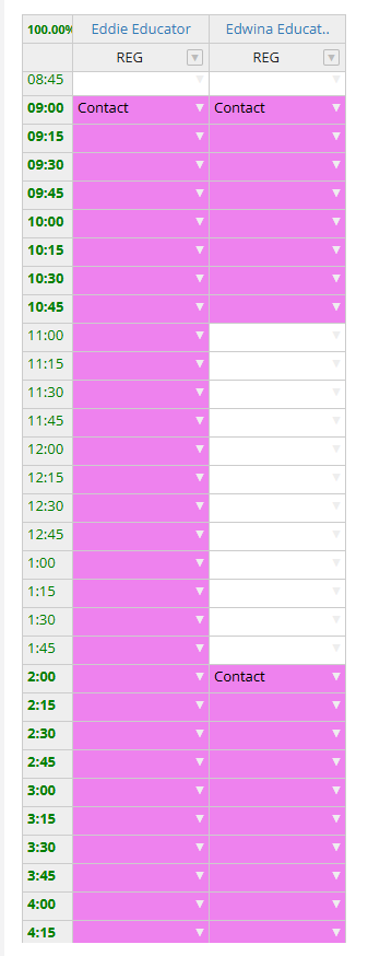 - At 9am, we will use the drop down menu to select Contact. This will prompt the scheduler to fill the remainder of the day with the task.
