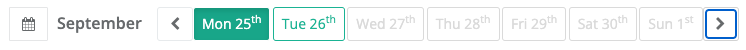 1. Day/Date selector: By default, the current week will be displayed, and any day can be clicked on to view the roster. Alternatively, using the calendar icon, admins can easily navigate to a particular day outside of the current week to add/edit/update or view the roster.