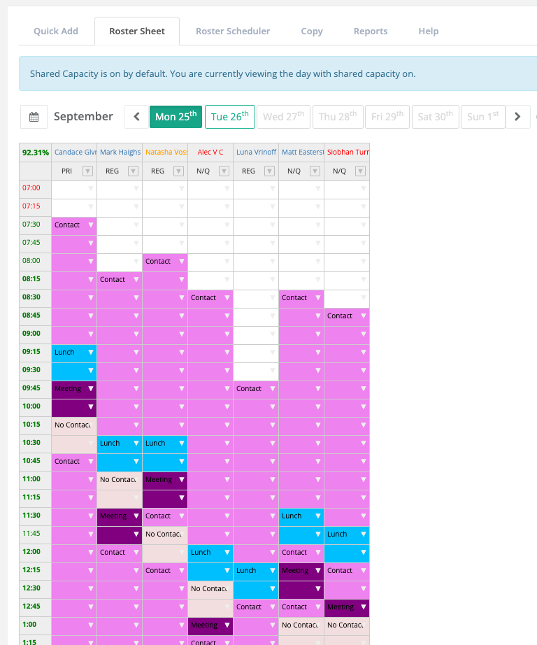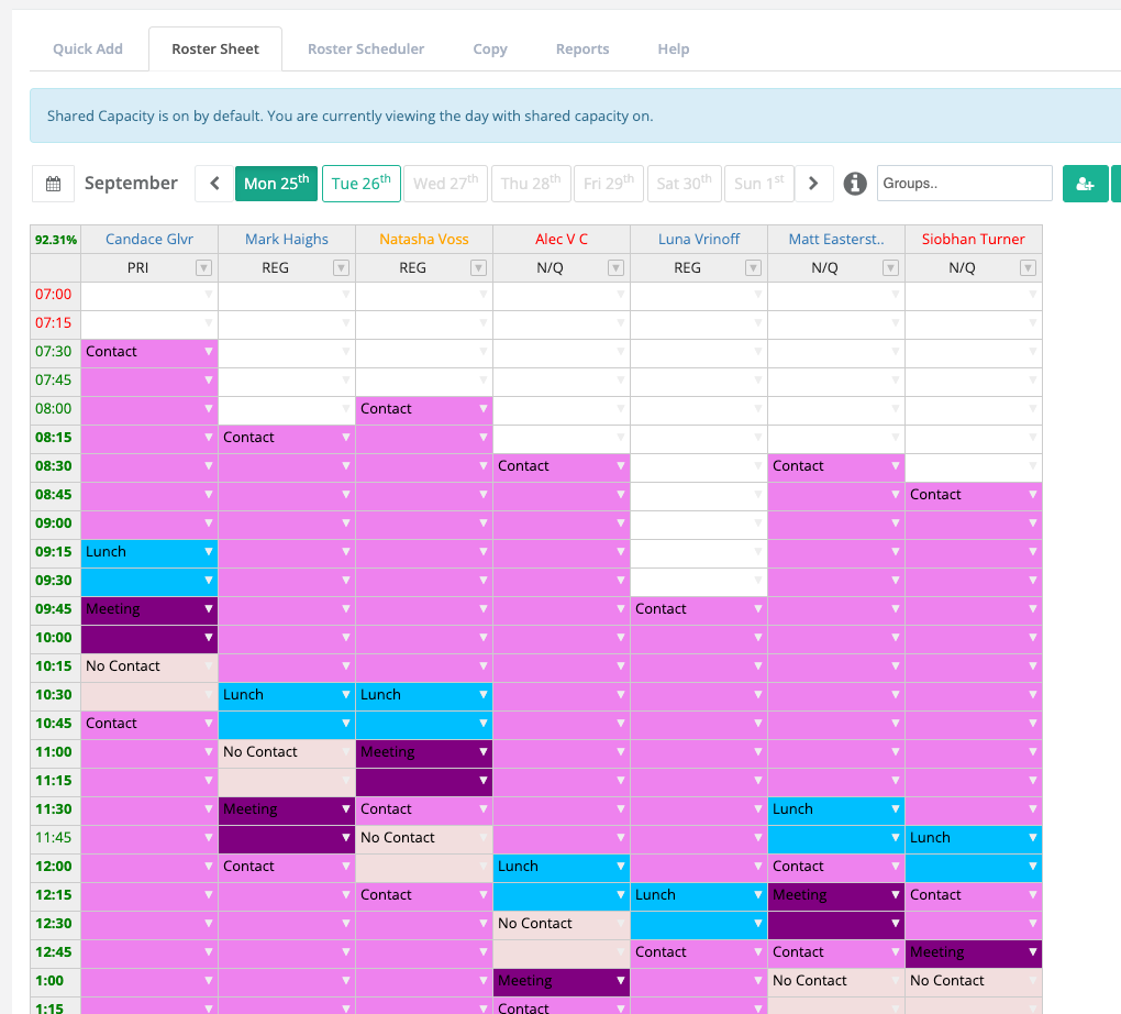 7. Extend to Midnight: This will extend the roster view to midnight allowing for inputting of after hours tasks.