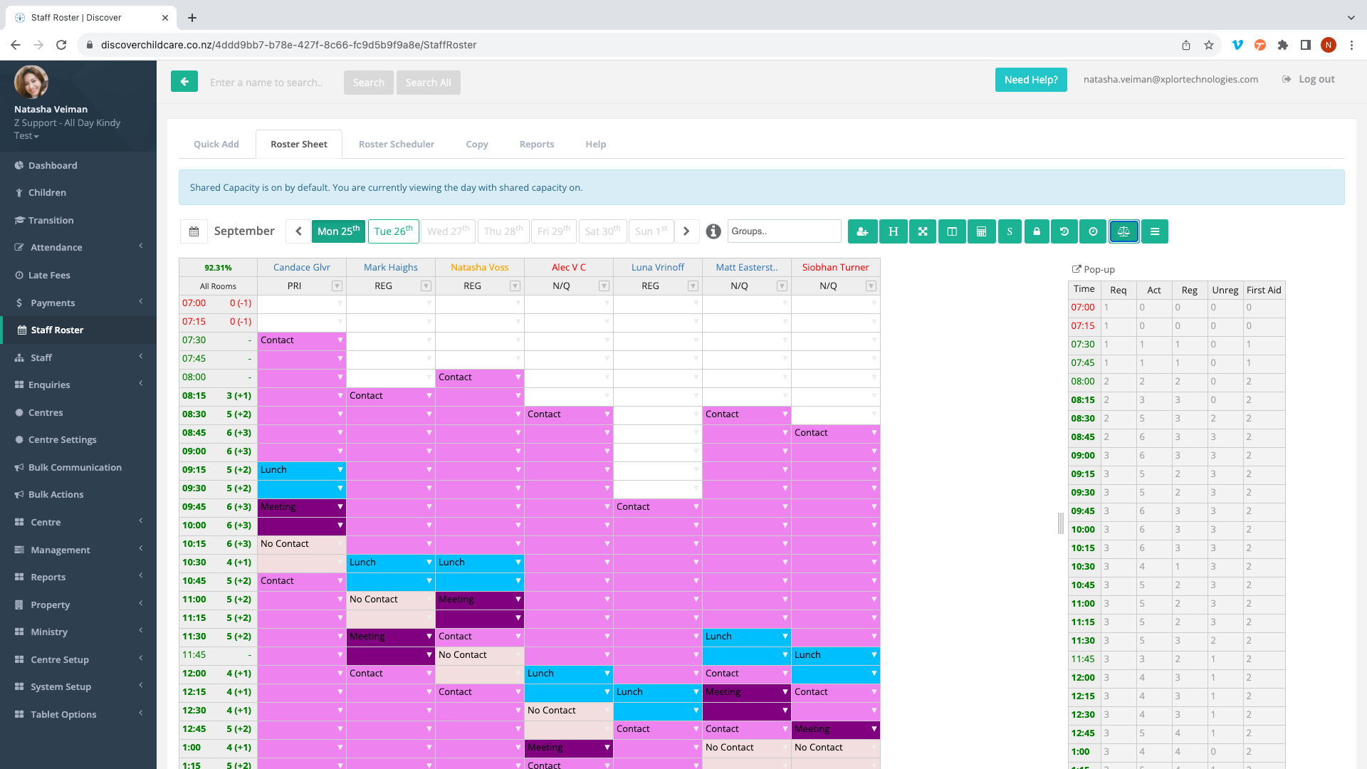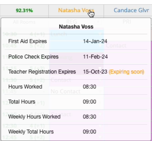4. Registered Staff Percentage: This number will increase/decrease based on the percentage of registered staff teaching throughout the day and any discretionary hours applied (calculated at 10/15 min increments depending on roster settings).