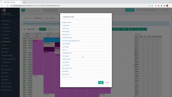 ![]() | Reorder Roster: This menu item enables administrators to reorder the staff within the roster offering the opportunity to view their holistic roster in a way that is meaningful to them.![]() |