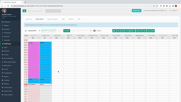 Orange - if your roster meets the Ministry ratio for funding purposes, but out of ratio in a particular room. *For Discover to be able to count how many staff are in a particular room you need to assign a specific room to specific tasks.