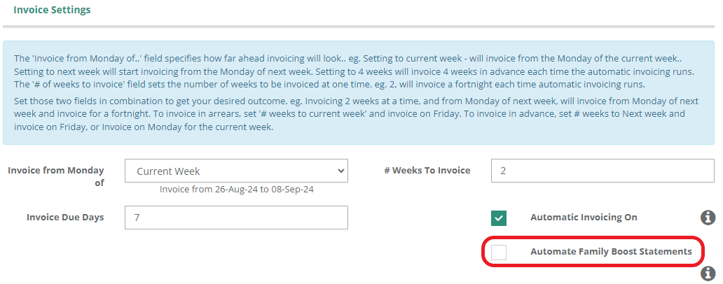 - Tick the checkbox next to 'Automate Family Boost Statements'