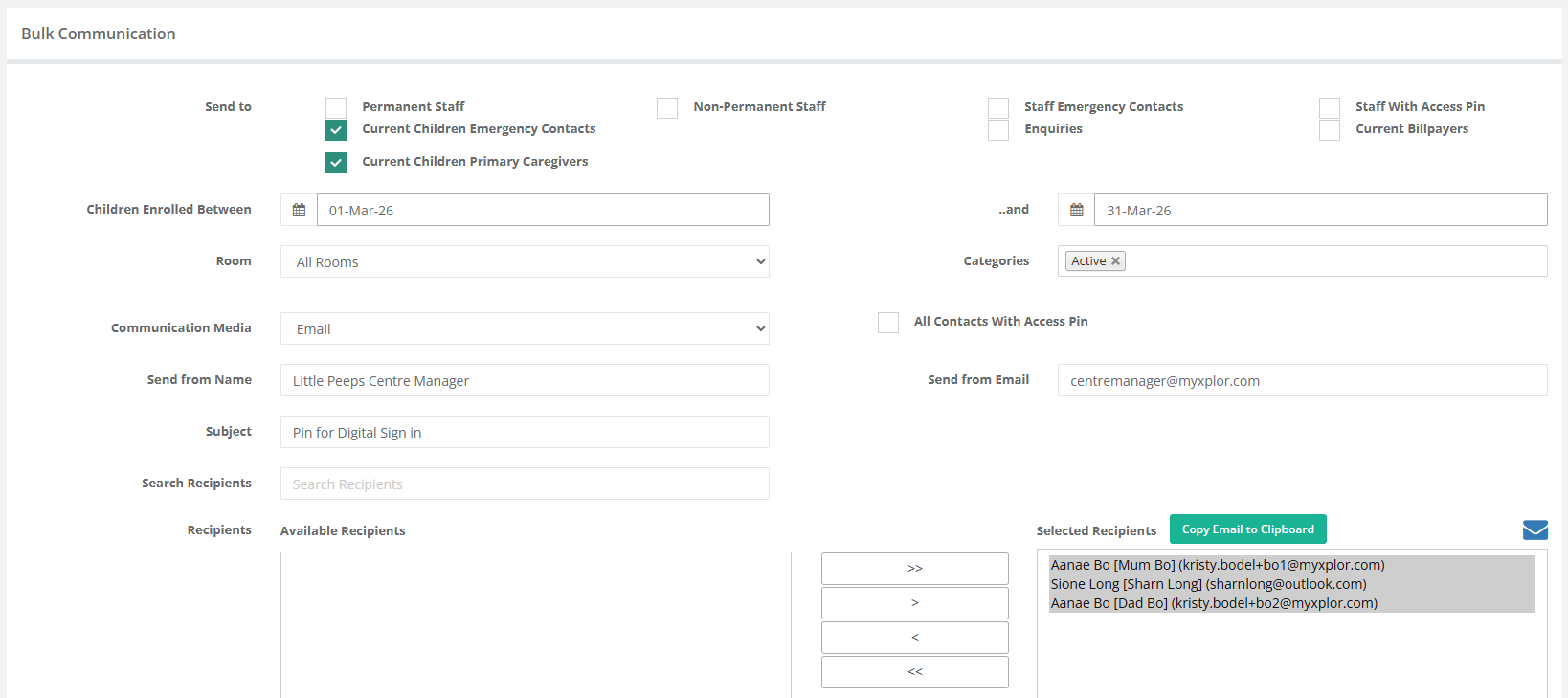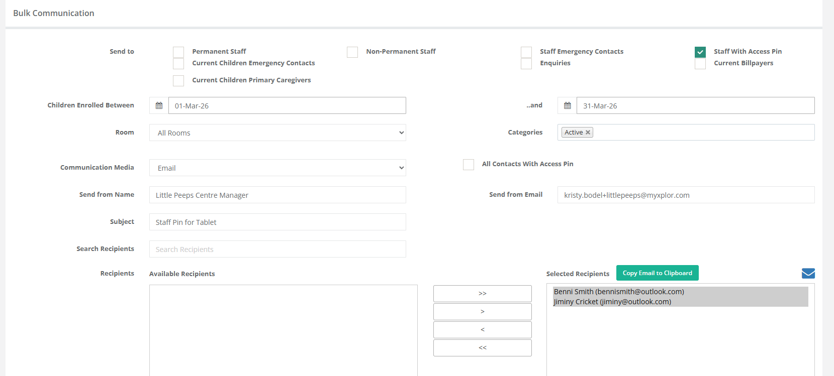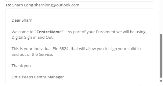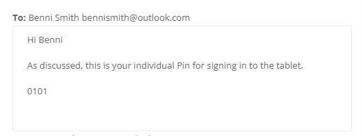 Each Contact at the Centre/Service will then have their own personalised Email with their Tablet Pin sent to them.