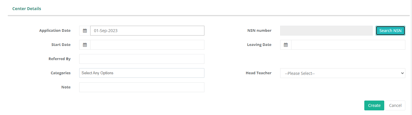Copy the child's information in to the fields, ensuring you click the 'Search NSN' button towards the bottom of the screen.